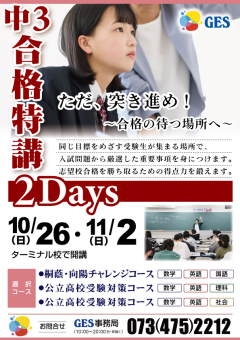 GESは、教室数・生徒数・卒塾生数・合格実績・知名度・指導力・情報力など、いずれも和歌山トップ水準の塾として、信頼いただいています。